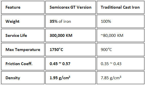 Massereduksjon: GT-versjonen veier bare 35 % av en standard støpejernsskive.
