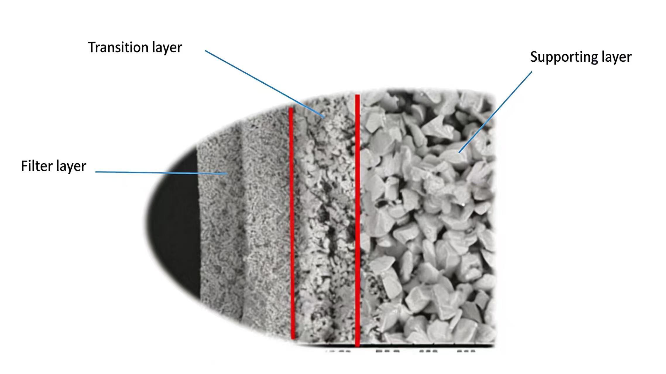 SemicorexSiC keramikkflate membraner viser en gradientporestruktur, som er sammensatt av trelags komposittstruktur: et 0,04 µm tett mikroporøst separasjonslag, et 0,5 µm tett mikroporøst sekundært separasjonslag og et 8 µm åpent makroporøst støttelag. Denne spesialdesignede gradientporestrukturen oppnår presis fysisk sikting av molekyler, partikler eller ioner av forskjellige størrelser. Stoffer som er mindre enn porestørrelsen kan passere jevnt gjennom membranporene, mens stoffer større enn porestørrelsen holdes tilbake på membranoverflaten eller inne i porene, og dermed oppnår effektiv separasjon og filtrering.